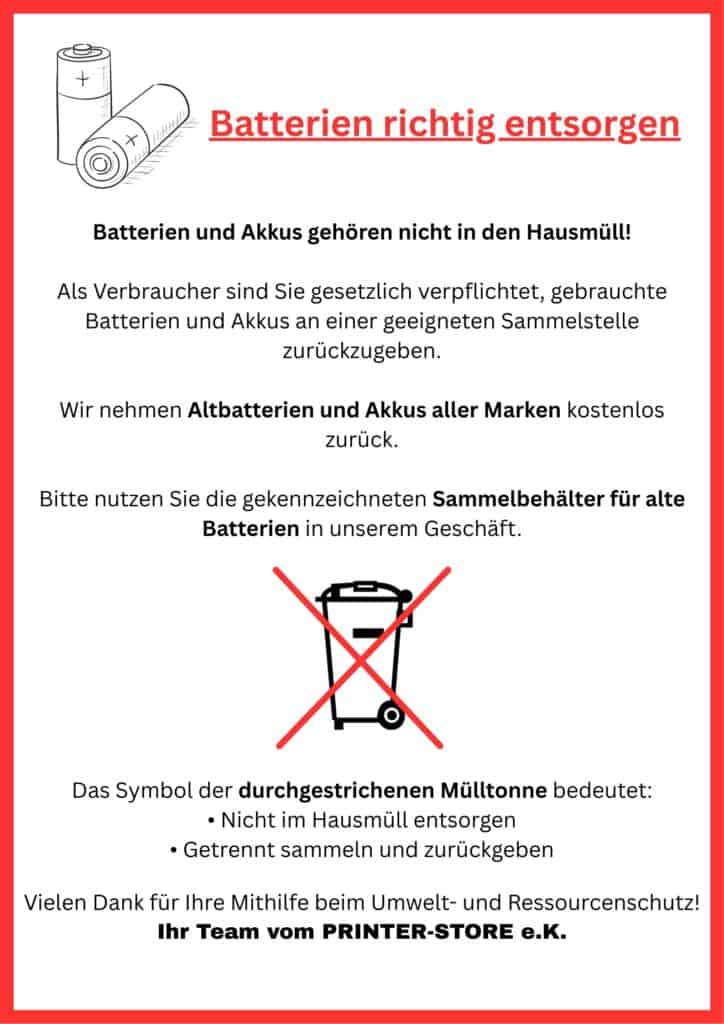 Altbatterien und defekte Akkus dürfen nicht in den Hausmüll!