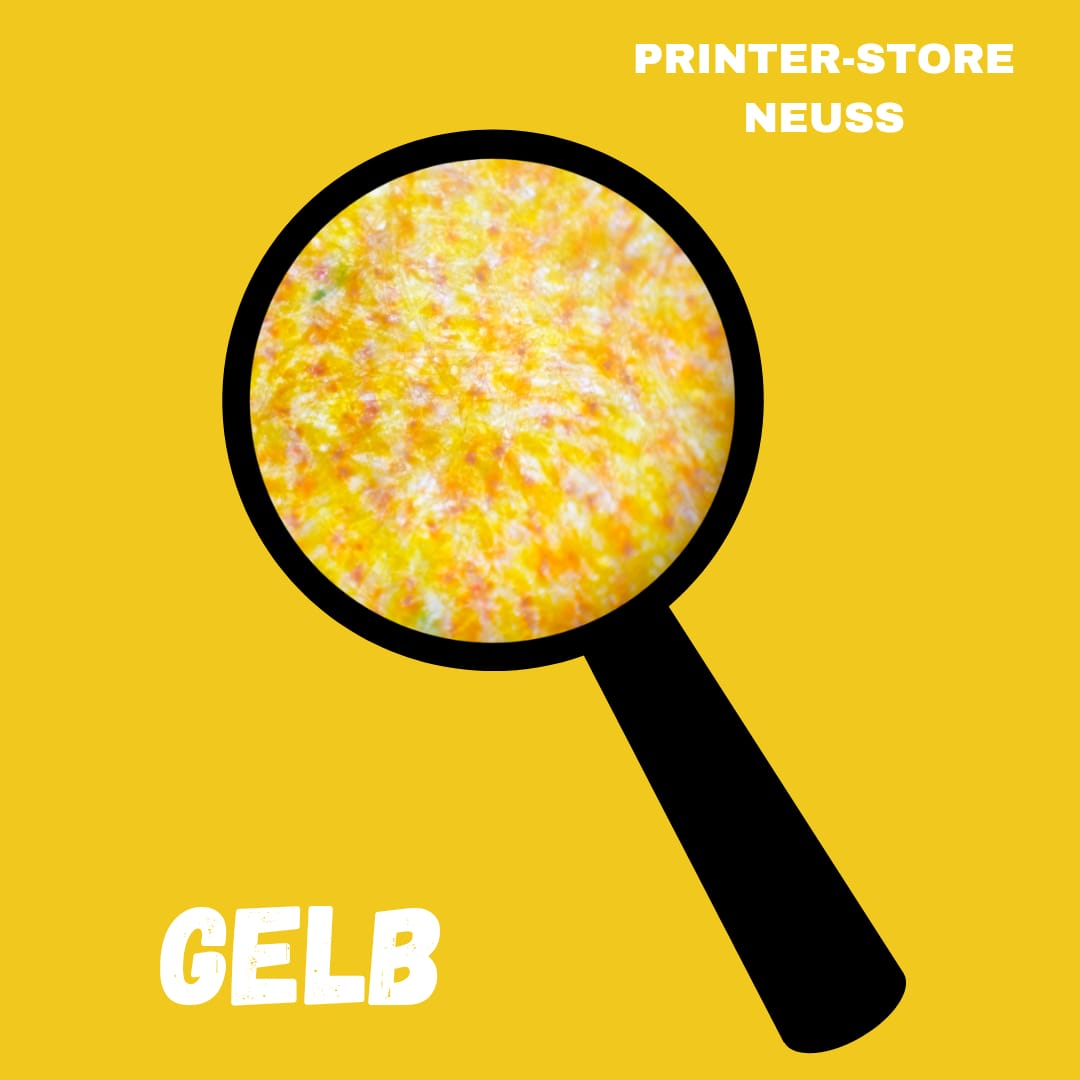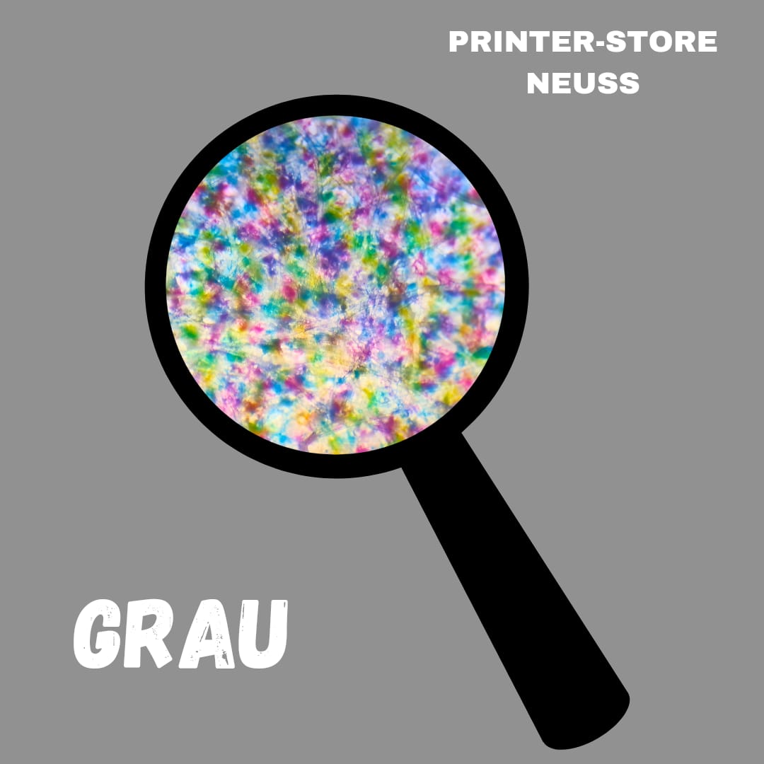 Die meisten Geräte kommen mit Cyan, Magenta, Yellow und Schwarz aus. Die einzelnen Tinten werden nicht etwa vorher im Drucker zusammengemischt, sondern die Farbe entsteht erst hinter den Druckdüsen, wo die benötigten Anteile miteinander vernebelt auf dem Papier landen. Wir haben für Sie einige Testdrucke unter ein Mikroskop gelegt. Hier erkennen Sie die einzelnen Tintentröpfchen, aus denen sich die Farben zusammensetzen.